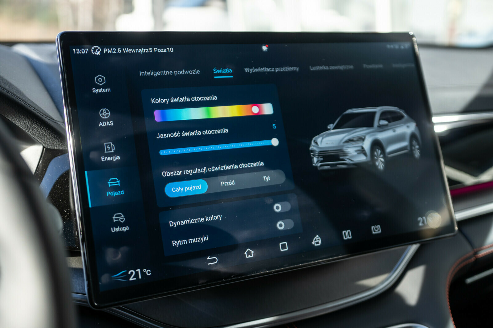 • Wielobarwne oświetlenie ambientowe, zsynchronizowane z rytmem muzyki